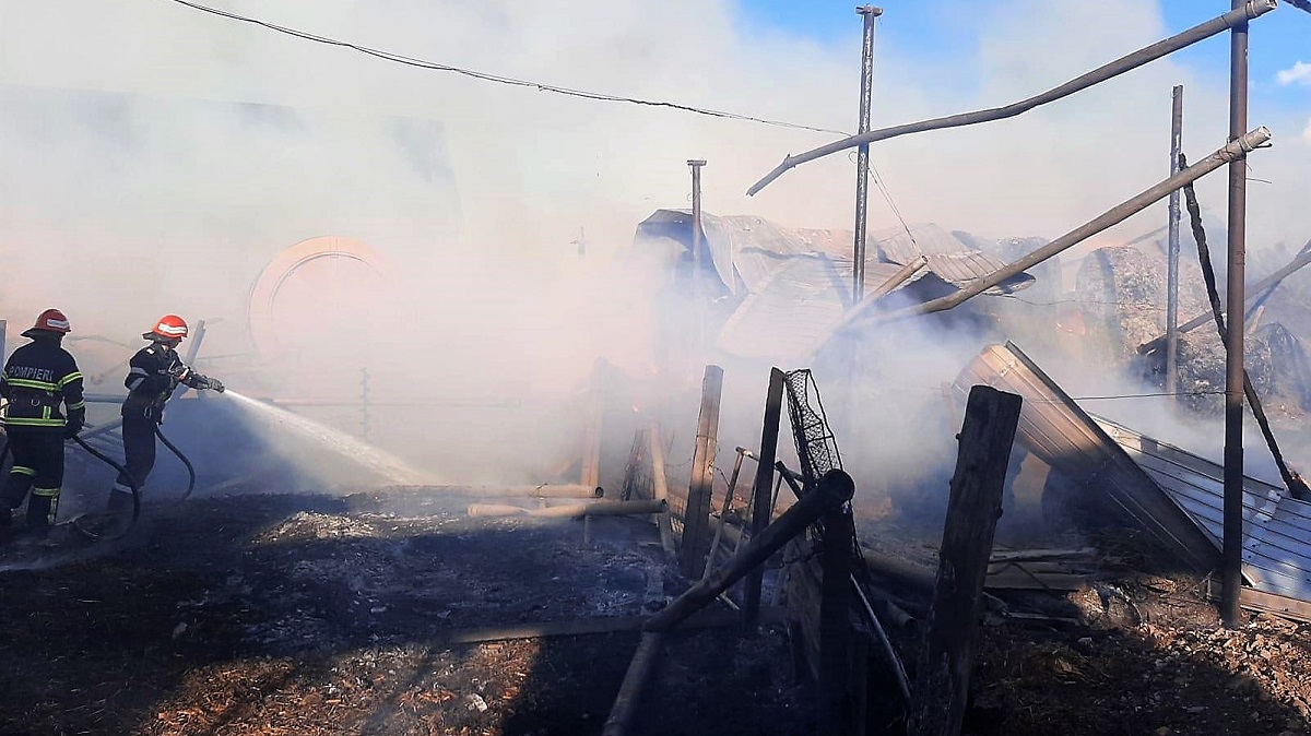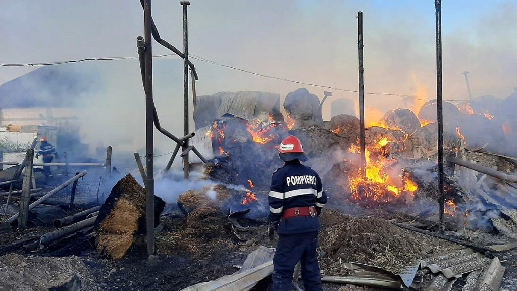 Pompierii tulceni au intervenit pe tot parcursul nopții de duminică spre luni, timp de aproximativ 15 ore, după ce sute de baloți de orz au luat foc într-o fermă din Jurilovca.