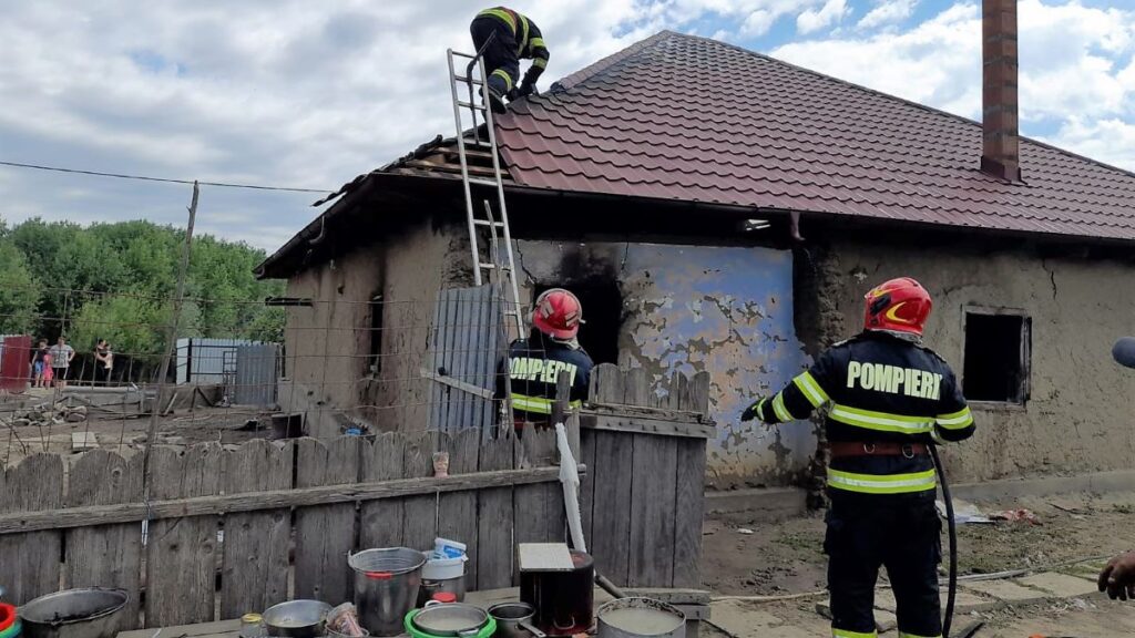 Locuință distrusă într-un incendiu în localitatea Grindu. FOTO: ISU Tulcea