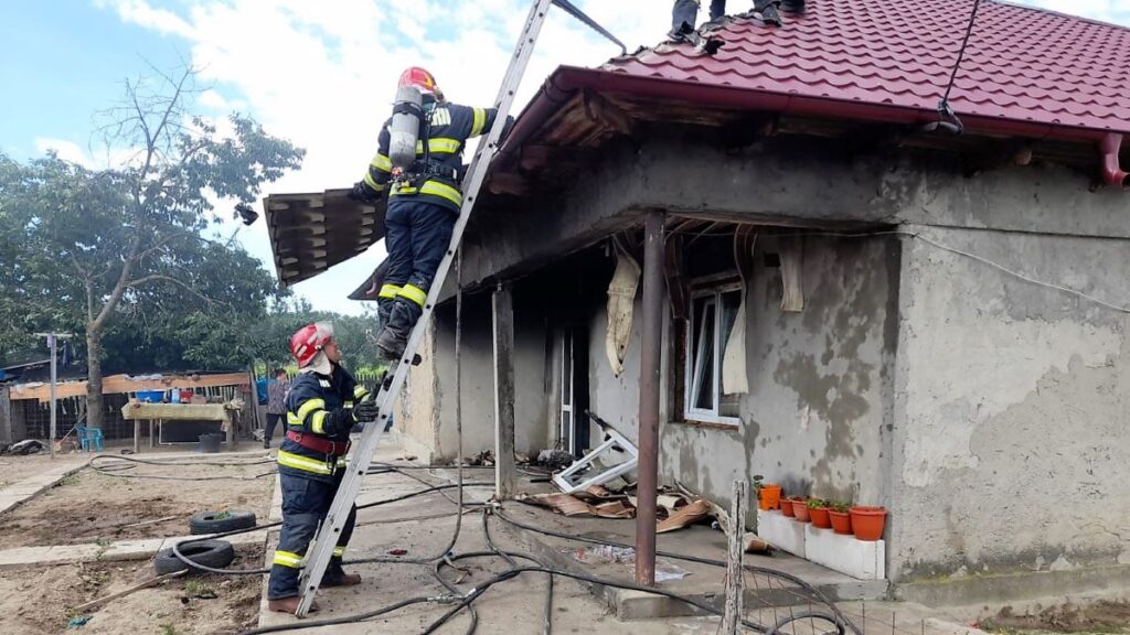 La sosirea echipajelor, flăcările se manifestau generalizat, aproximativ 80 la sută din locuință fiind cuprinsă de acestea.