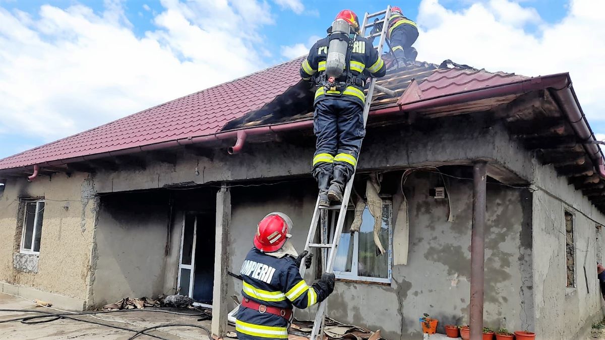 Locuință distrusă într-un incendiu în localitatea Grindu. FOTO: ISU Tulcea