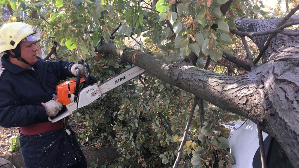 Mașini avariate în Tulcea după ce mai mulți copaci au fost doborâți de vânt. FOTO arhiva ISU „Delta” Tulcea