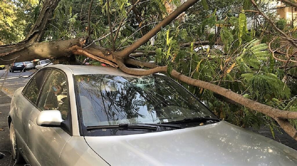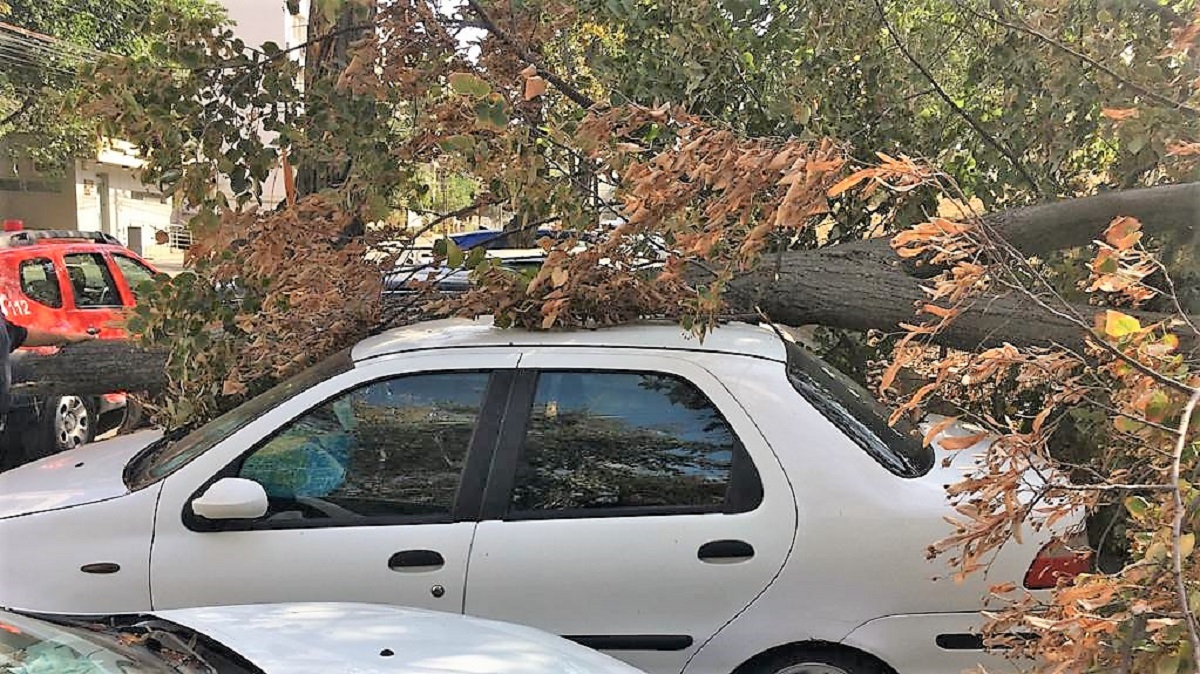 Mașini avariate în Tulcea după ce mai mulți copaci au fost doborâți de vânt. FOTO ISU „Delta” Tulcea