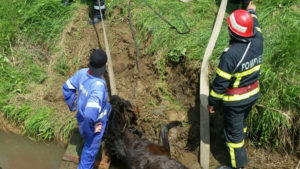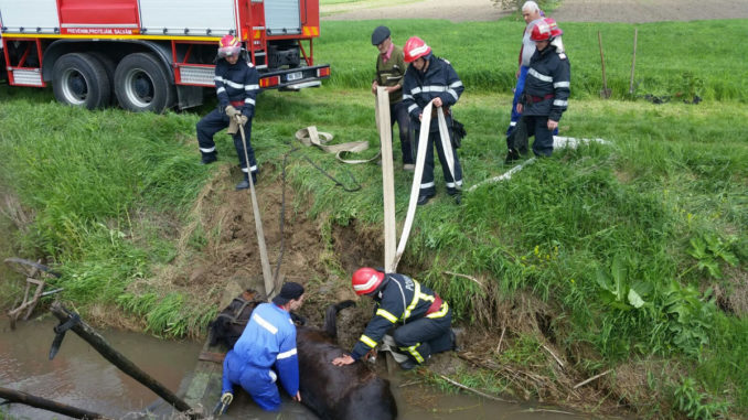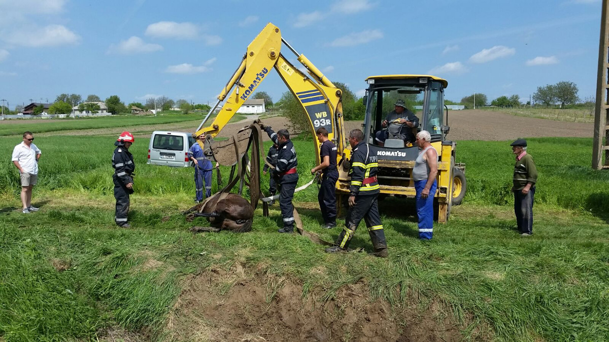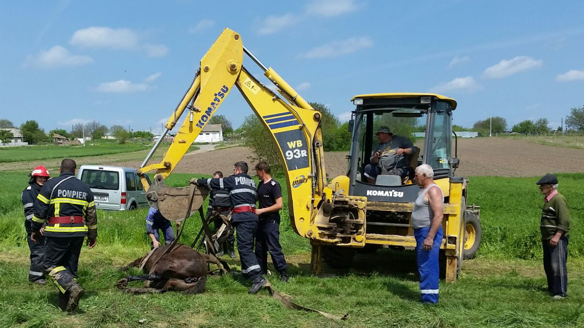 Pompierii ISU Delta Tulcea au fost solicitați prin 112 în jurul orei 12.40 să intervină pentru salvarea unui cal căzut într-o derea.