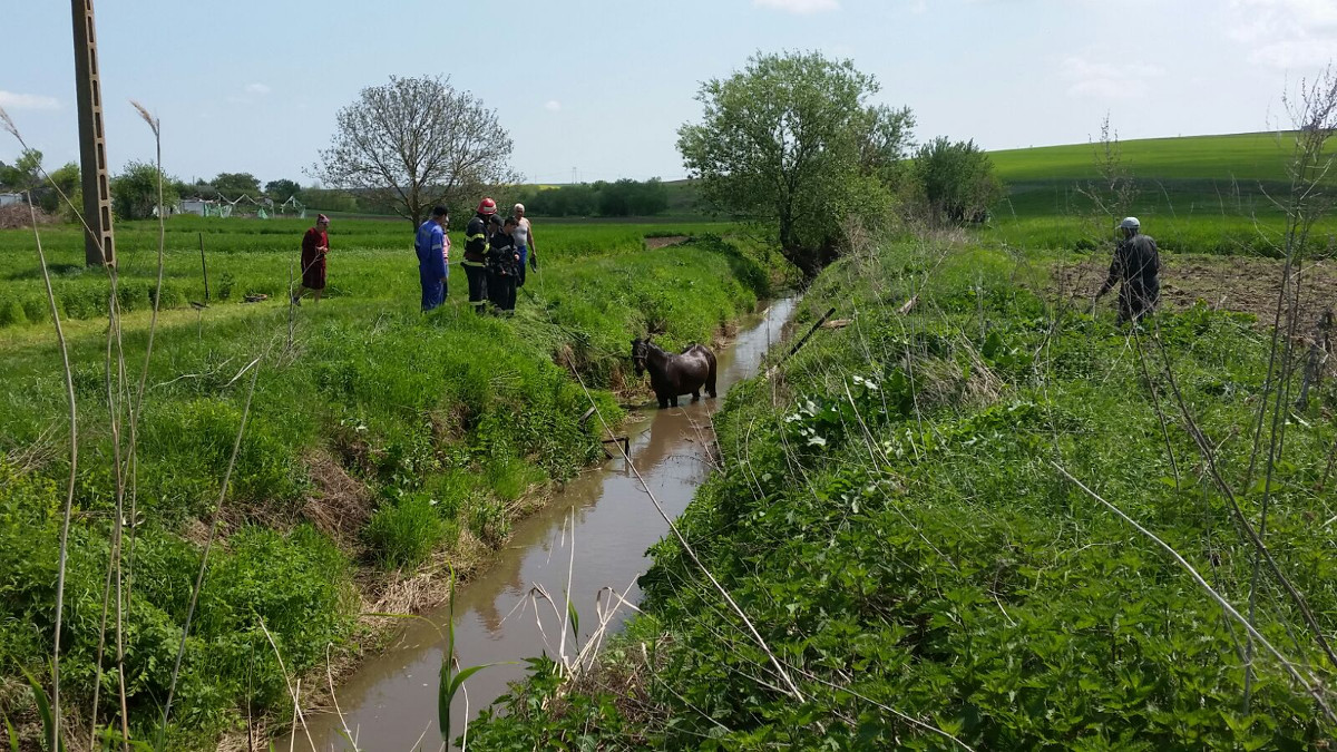 La locul solicitării, în localitatea Poșta a fost trimis un echipaj format dintr-o autospecială de stingere cu apă și spumă, 1 ofițer și 5 subofițeri, din Detașamentul de pompieri Tulcea. Salvatorii încearcă să scoată animalul din apă, dar acesta este obosit și nu cooperează, făcând misiunea de salvare mai grea.