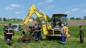 Pentru scoaterea animalului s-a apelat la un buldoexcavator. FOTO ISU Delta Tulceaa