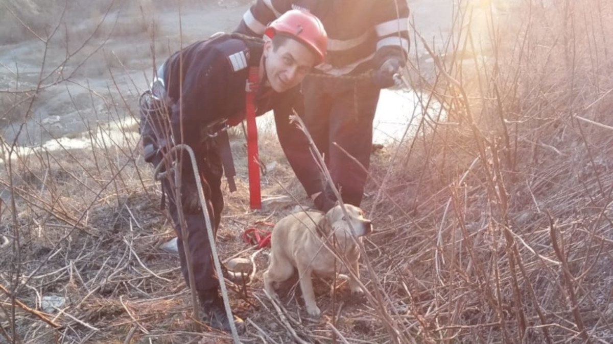 Cățelul fetelor a fost salvat și el de către pompieri. FOTO ISU Delta Tulcea