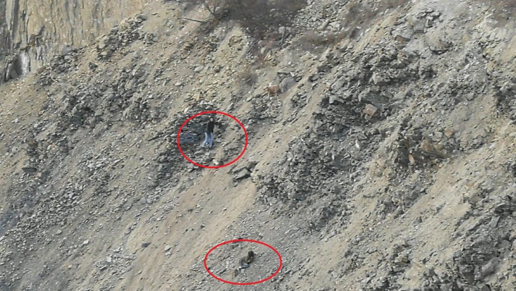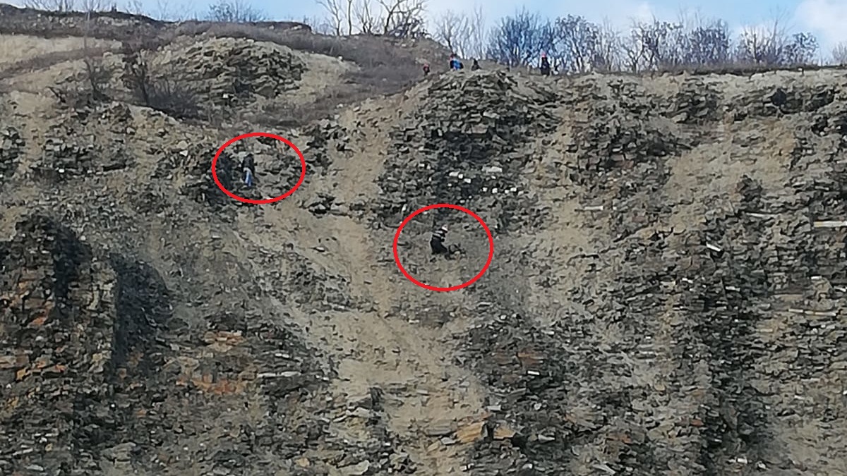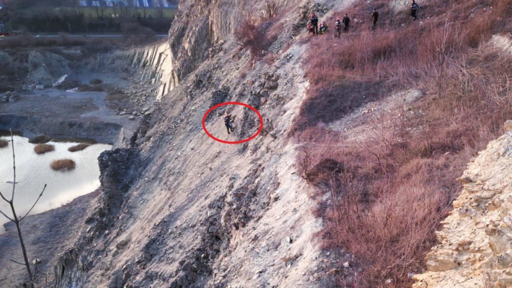 Cele două au fost văzute într-un târziu: erau pe marginea carierei, pe pantă, care în acel loc are aproximativ 100 de metri adâncime. Cea care sunase abea se mai putea ține, fiind căzută la pământ și în pericol să alunece în orice moment.