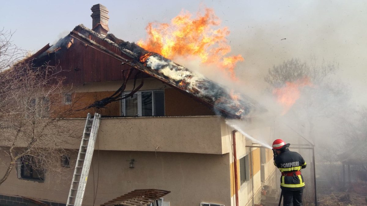 Pompierii au lichidat incendiul extins la locuință. FOTO ISU Delta Tulcea