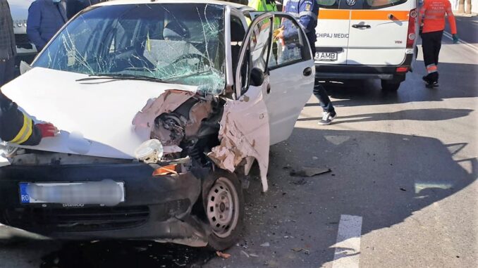 O persoană a fost rănită într-un accident rutier petrecut în municipiul Tulcea. FOTO IPJ Tulcea