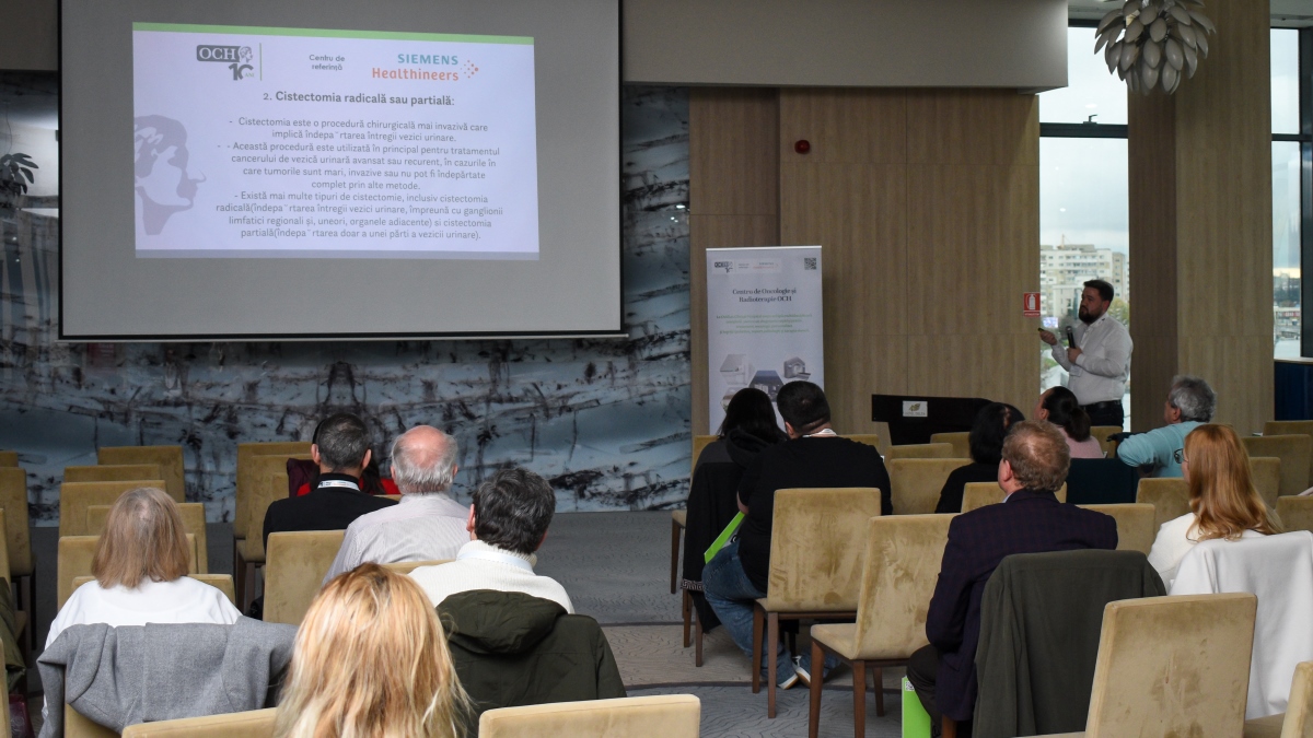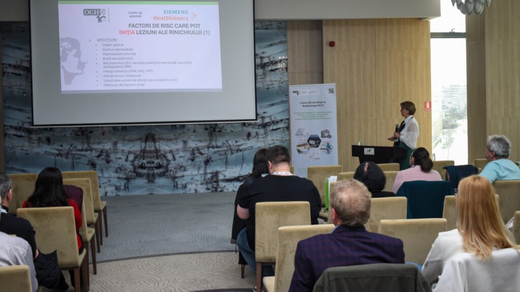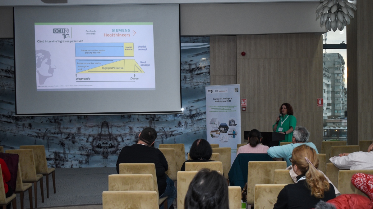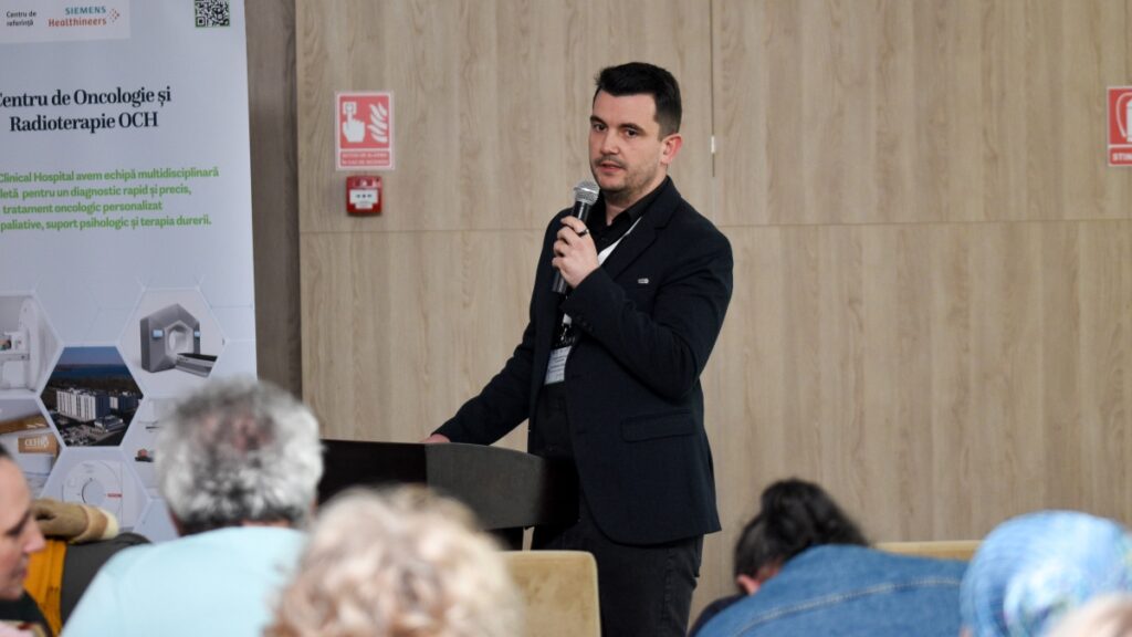 Dr. Sebastian Vasilescu, medic specialist cardiologie și cardiologie intervențională, coordonatorul Laboratorului de Angiografie și Cardiologie Intervențională OCH, prezintă „Diferența de planificare a strategiei terapeutice în sindromul coronarian cronic și infarct miocardic acut”. „Managementul durerii pacientului oncologic” este tema dezvoltată de Ș.L.