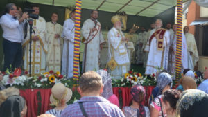 Sf. Liturghie a fost oficiată pe un podium special amenajat lângă biserică, la evenimentul istoric de astăzi luând parte numeroși credincioși din municipiul Tulcea, dar și din localitățile mai apropiate, alături de ei fiind prezenți și reprezentanți ai autorităților locale.
