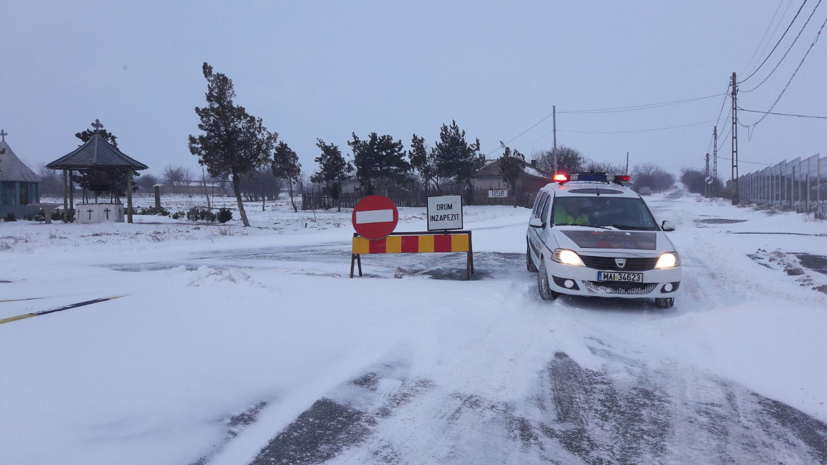 politie drum inchis zapada iarna cod (1) Polițiștii au înfruntat Codul Portocaliu în stradă. FOTO IPJ Tulcea