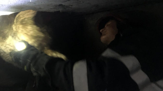 După mai multe zile și încercări eșuate ale vecinilor de a scoate patrupedul blocat în rezervorul de pe strada Sublocotenent Corneliu Gavrilov, în spatele unei foste unități de panificație, a venit rândul pompierilor. Deși cățelul primise apă și mâncare în acest răstimp, alertați de urletele câinelui, cetățenii au sunat la numărul de urgență 112.