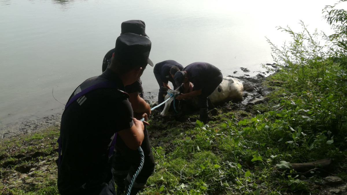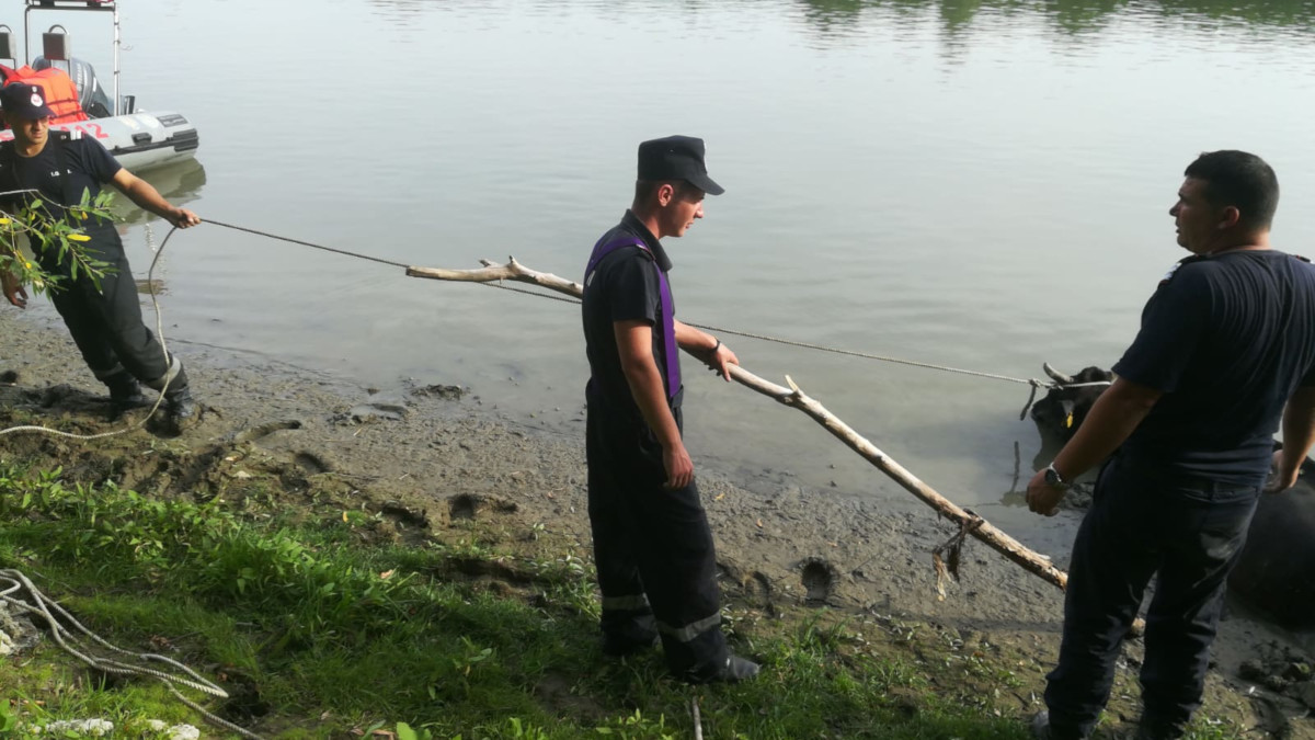 Salvatorii Secției de pompieri Măcin a ISU Delta au fost solicitați în jurul orei 16.30 să intervină pentru salvarea a două bovine blocate în nămol, pe brațul Măcin-Dunărea Veche.