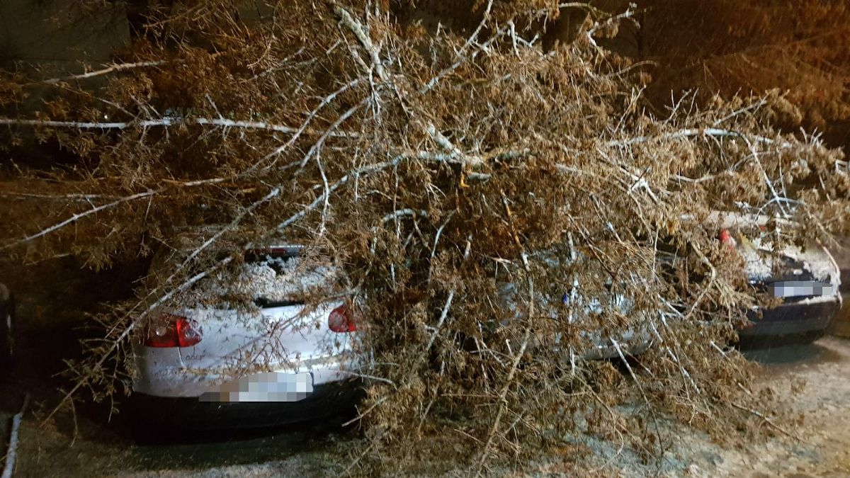 zapada interventie pompieri isu (9) Copacii rupți de vânt au căzut pe mașinile parcate. FOTO ISU Delta Tulcea