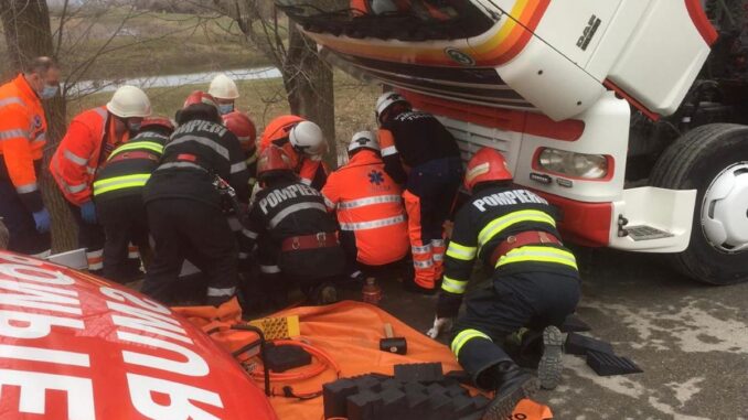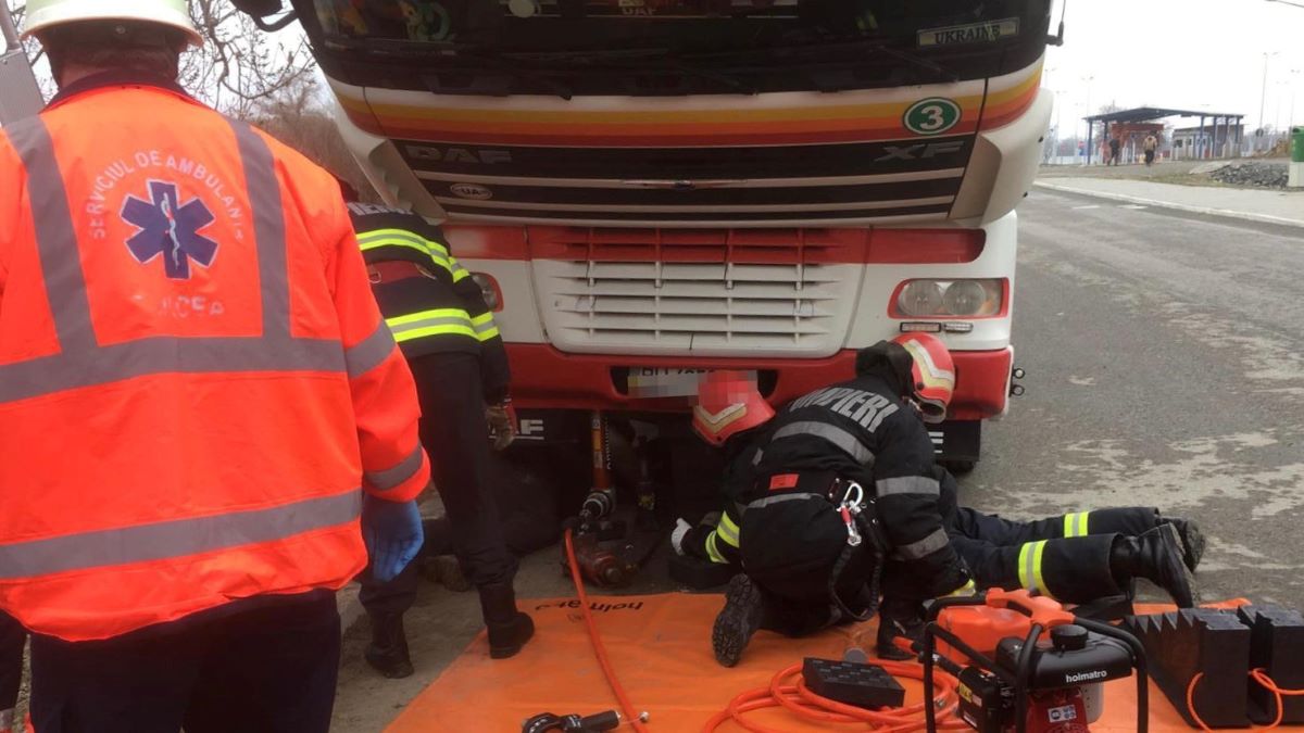 Un șofer de TIR ucrainean a ajuns la spital, marți, 16 martie, după ce a fost prins sub autotren în timp ce efectua reparații.
