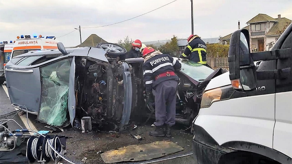 Trei răniți în urma unui accident rutier petrecut în localitatea tulceană Baia. FOTO ISU Tulcea