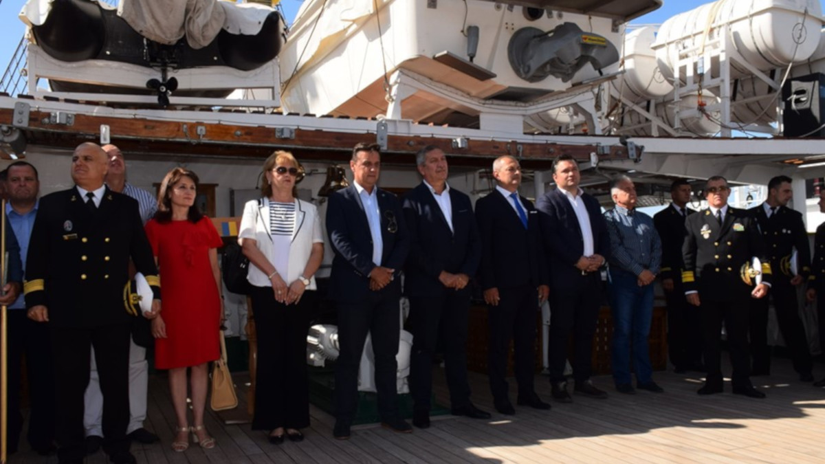 Oficialitățile locale au fost primite la bordul navei școală. FOTO Forțele Navale