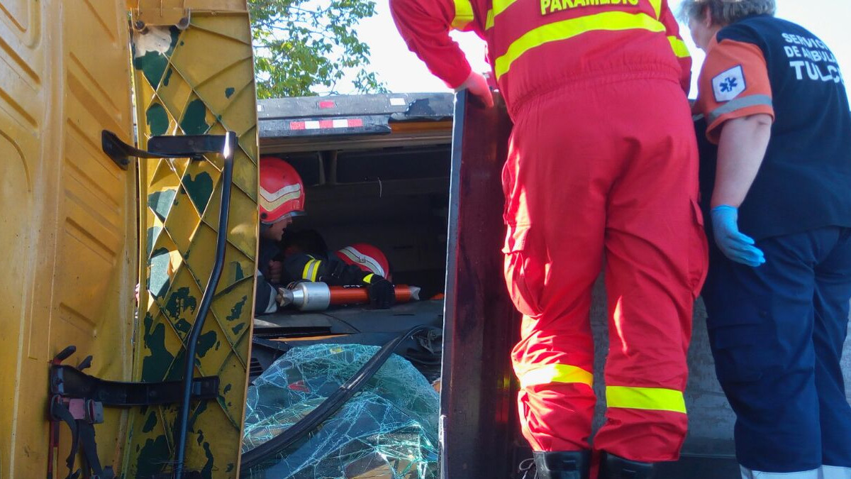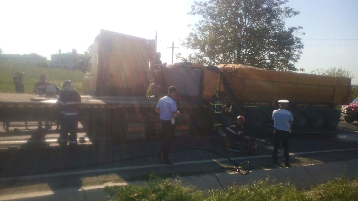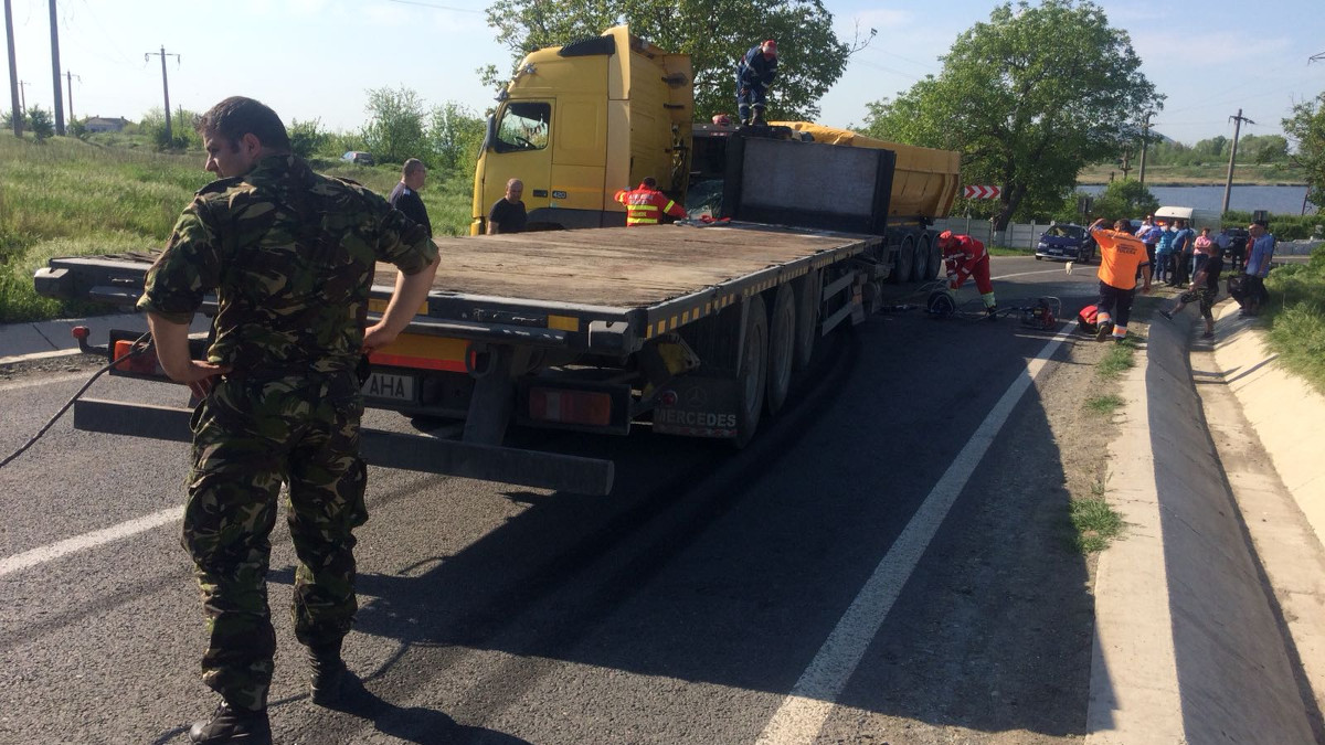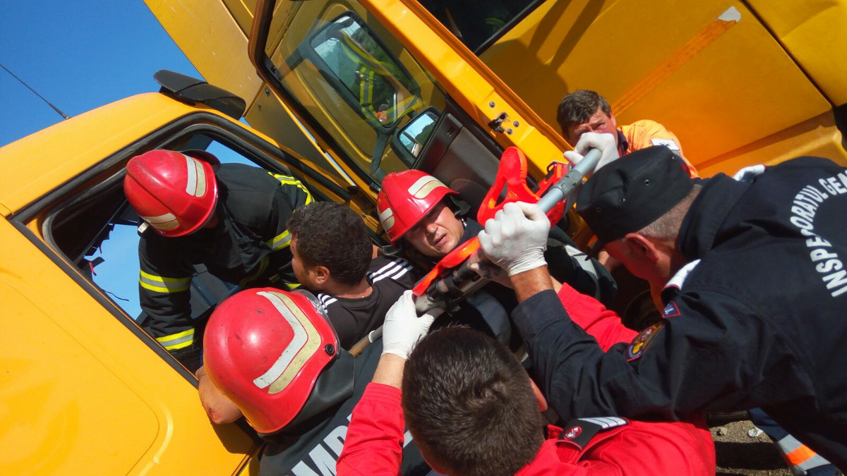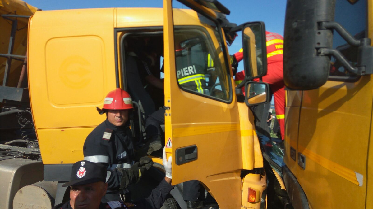 Echipajul de descarcerare a reușit după aproximativ jumătate de oră să îl scoată pe șoferul prins între resturile cabinei, iar echipajele medicale i-au acordat primul ajutor.