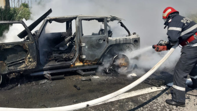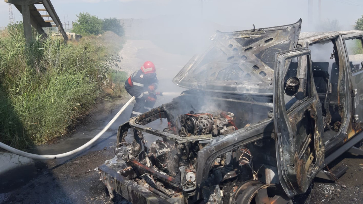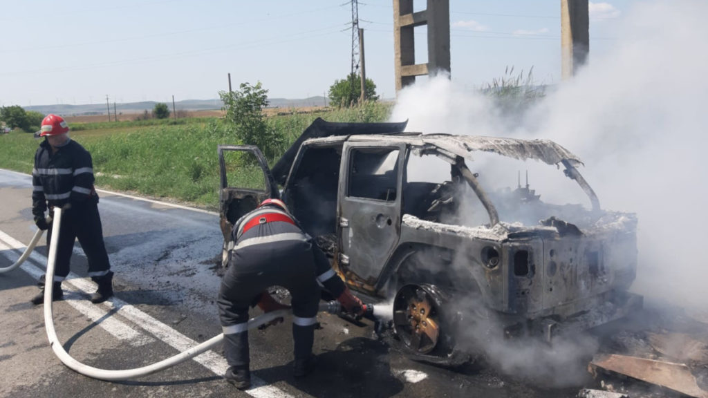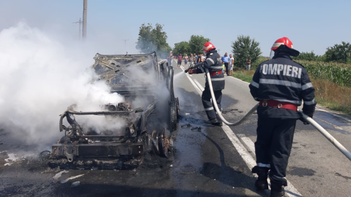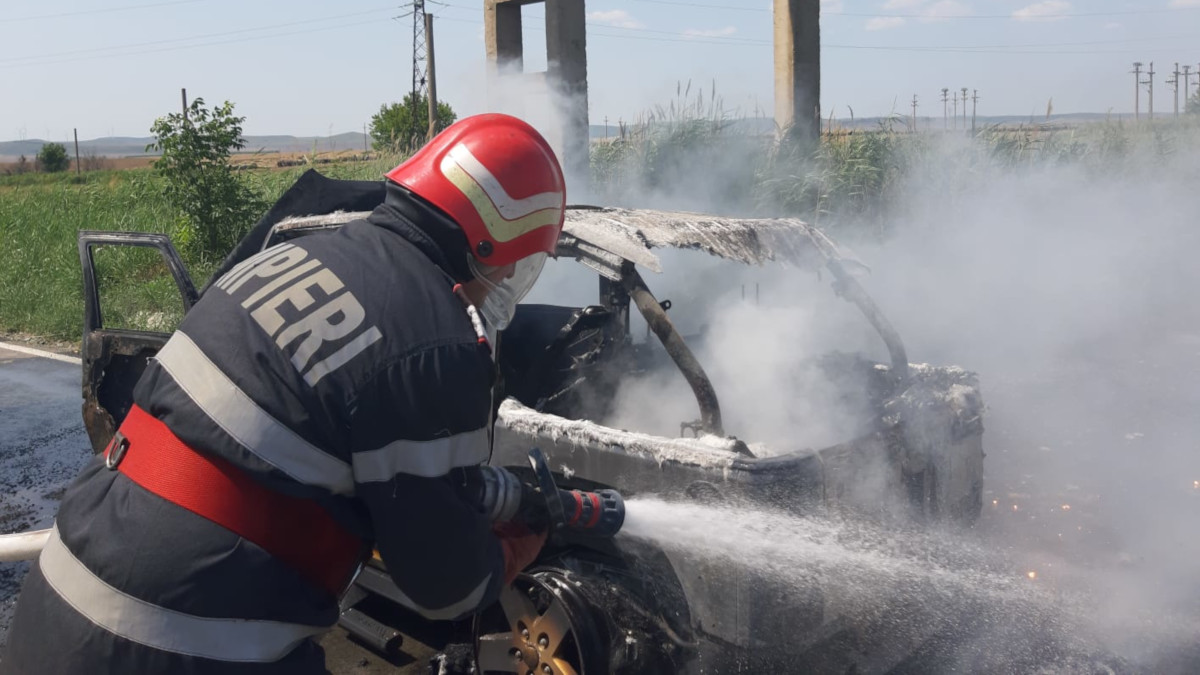 O mașină a ars ca o torță pe DN 22, în apropiere de Babadag, cel mai probabil de la un scurt circuit. Din fericire, toate persoanele aflate în ea s-au auto evacuat la timp.
