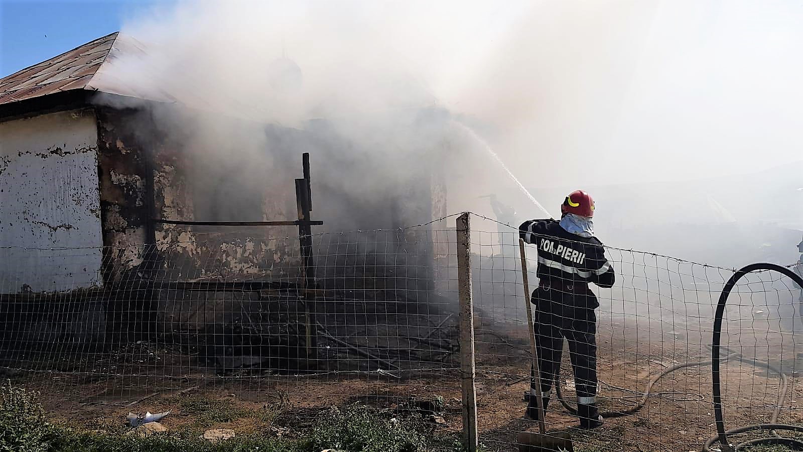 Incendiu izbucnit la o locuință din localitatea Mihail Kogălniceanu. FOTO ISU Tulcea