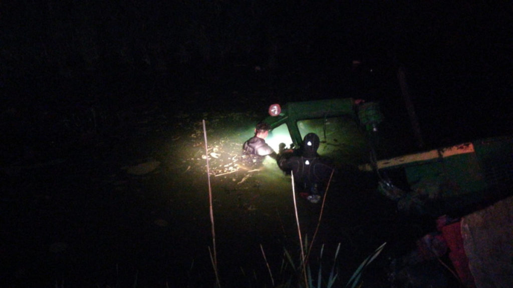 Un bărbat a fost găsit înecat într-un canal de irigații de pe raza localității Văcăreni, după ce a căzut cu buldoexcavatorul pe care îl conducea, de pe mal. A fost nevoie de intervenția scafandrilor ISU Delta pentru a-l căuta sub apă.