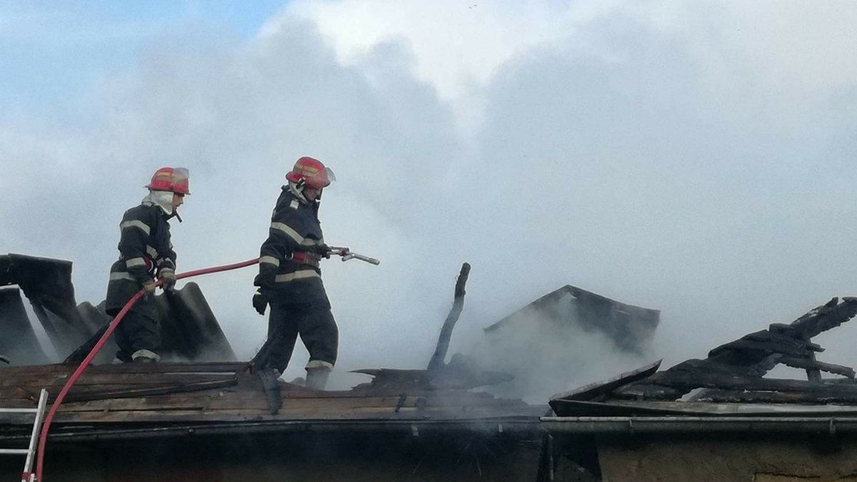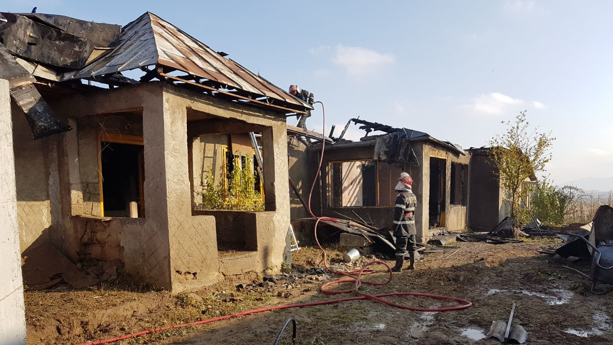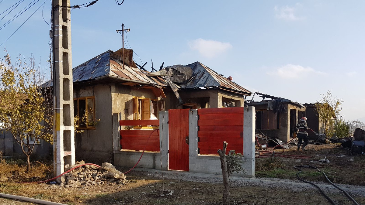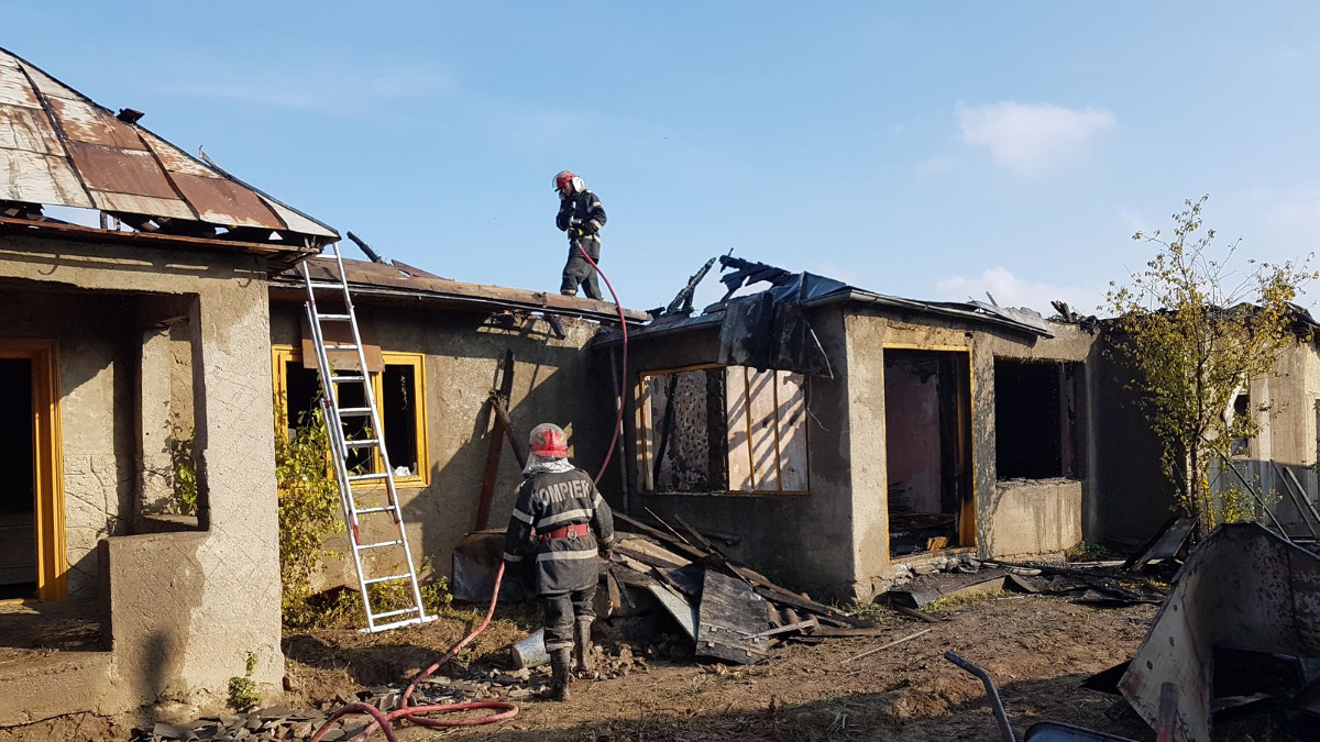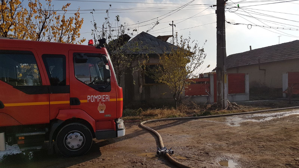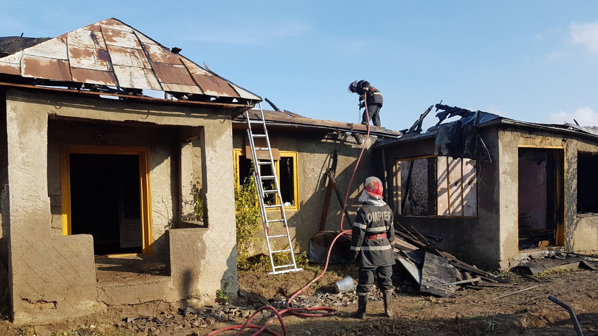 Pompierii din Măcin au intervenit pentru a stinge un incendiu la o casă din Carcaliu. FOTO ISU Delta Tulcea
