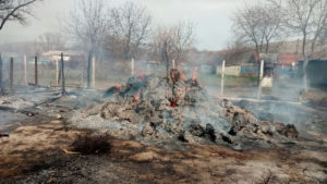 La fața locului au fost trimise 2 autospeciale de stingere cu apă și spumă și 9 subofițeri. Ajunși la locul solicitării, pompierii au constatat că este vorba la un incendiu ce a cuprins 25 baloți lucernă și o șiră de coceni. S-a stabilit că incendiul a izbucnit din cauza neatenției proprietarului care a vrut să își igienizeze curtea, dând foc la gunoaie, dar nu a supravegheat focul care s-a întins și la furaje.