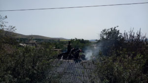 Pompierii au reușit să potolească incendiul, stabilind ulterior că acesta a pornit de la un foc în spatele casei, făcut de proprietar.