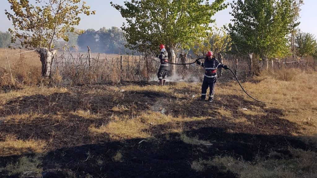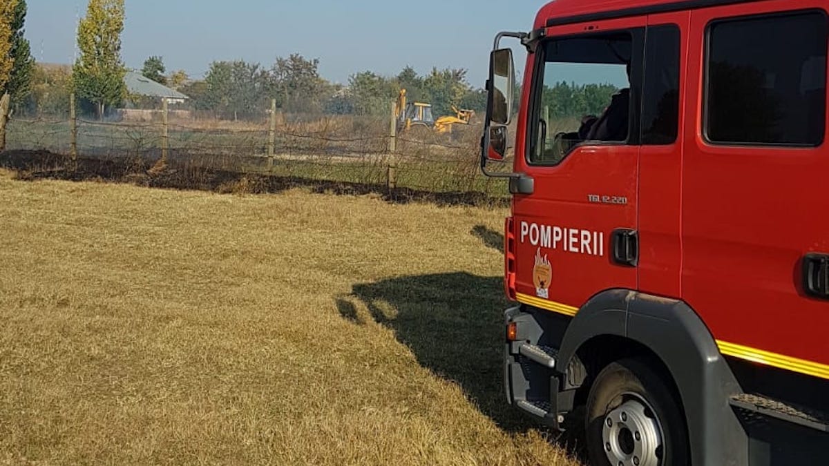 Echipajul a observat că flăcările au cuprins o suprafață de teren de 500mp și apoi s-au extins la un gard de aproximativ 100 metri liniari.