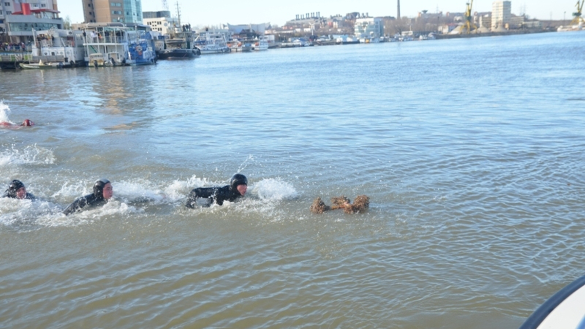 Zece temerari s-au aruncat în apele reci ale Dunării. FOTO Episcopia Tulcii