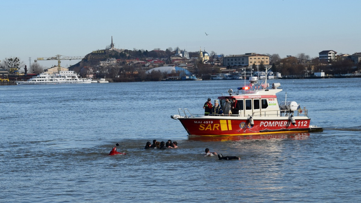 Zece temerari s-au aruncat în apele reci ale Dunării. FOTO Episcopia Tulcii