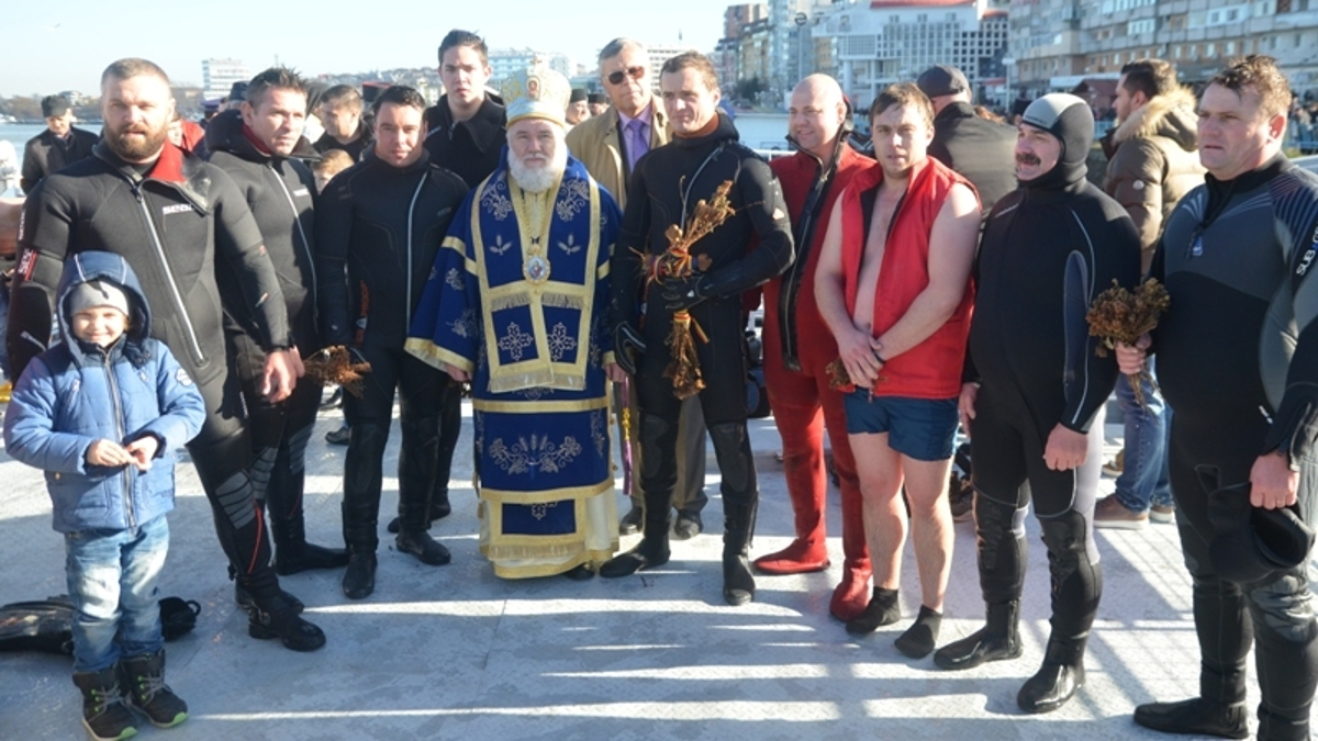 Boboteaza la Tulcea (9) PS Visarion, Episcopul Tulcii i-a felicitat pe toți cei care au sărit în apă să recupereze crucea. FOTO Episcopia Tulcii