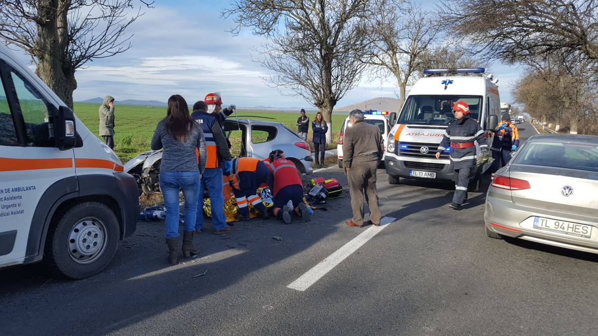 Accidentul rutier s-a produs în jurul orei 13.00 pe DN 22, între localitățile Babadag și Mihail Kogălniceanu. Un autoturism Peugeot a fost scăpat de sub control și a intrat într-un pom. Pasagera din mașină a fost cea care a sunat la 112 și a cerut ajutorul, șoferița fiind inconștientă și prinsă între resturile contorsionate ale mașinii. La locul producerii accidentului a fost trimis echipajul de descarcerare din cadrul stației de pompieri Babadag a ISU Delta Tulcea, precum și un echipaj SMURd și o autospecială a Serviciului de Ambulanță.