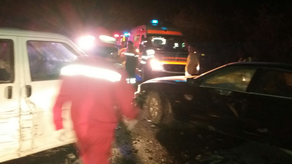 Accident rutier 3 masini intre Tulcea si Cataloi (1) DN 22 a fost blocat in urma coleziunii a trei autoturisme. FOTO ISU Delta Tulcea
