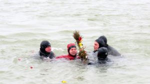 Pe o vreme caracterizată de „gerul bobotezii“, cu temperaturi scăzute și ninsoare, plutonier major Cacenco Pavel din cadrul ISU Delta Tulcea a reușit să recupereze pentru al doilea an consecutiv crucea aruncată în apele Dunării de către PS Visarion.