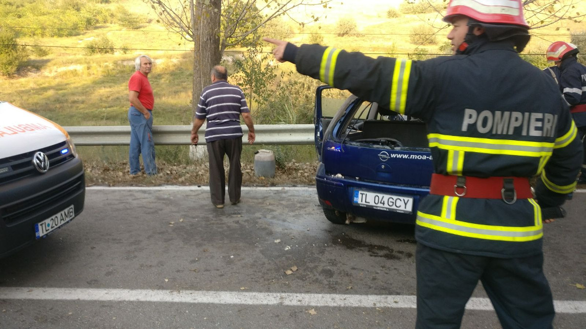 În condiții încă neelucidate, duminică după amiază un șofer a pierdut controlul autoturismului și s-a izbit violent de parapetul lateral pe DN 22, între Tulcea și Agighiol. Impactul a fost atât de puternic încât, pentru ca personalul medical al Serviciului de Ambulanță să poată ajunge la conducătorul auto rănit, a fost solicitat și ajutorul ISU Delta Tulcea. La fața locului a fost trimisă o autospecială cu apă și spumă și o autospecială de descarcerare grea și 7 subofițeri. Pompierii au reușit în scurt timp să îl scoată pe bărbatul rănit și să îl predea cadrelor medicale.