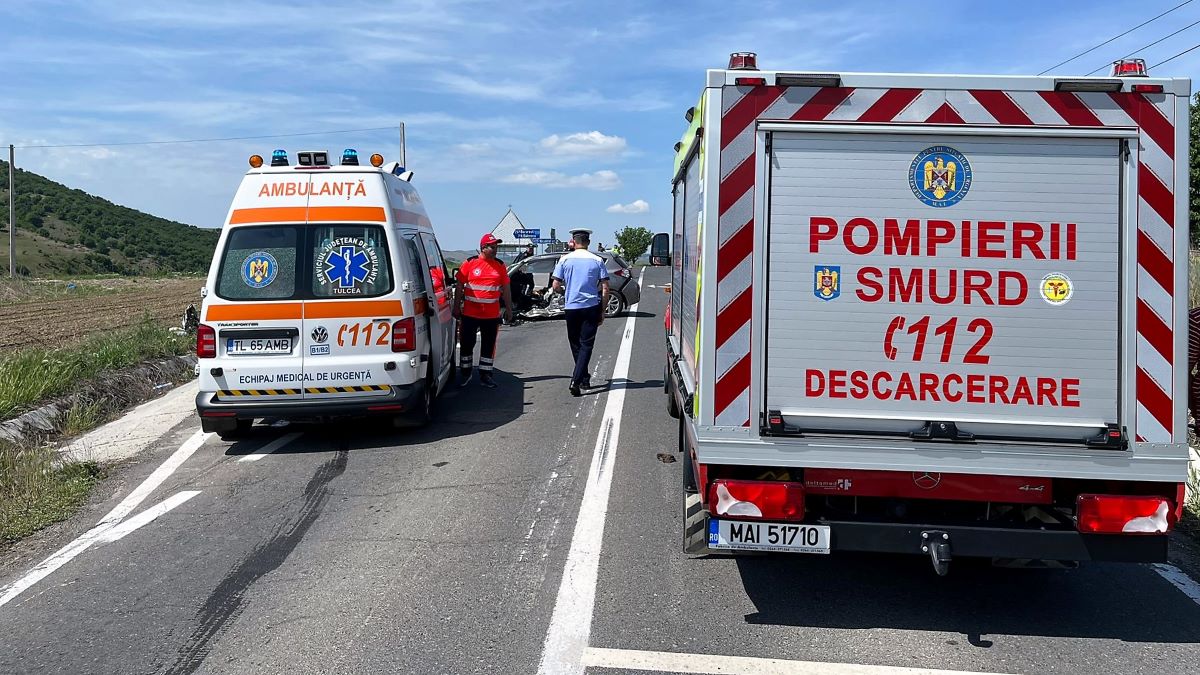 Cinci victime în urma unui accident rutier petrecut la ieșirea din localitatea Izvoarele. FOTO: ISU Tulcea