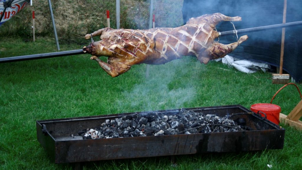 “Avem un berbecuț la proțap, un batal este pregătit după o rețetă de aici din Dobrogea. După cum șiți, aici în Dobrogea sunt multe naționalități – machedoni, tătari, turci – și toți mănâncă carne de berbecuț. Este un baiț special făcut din bere, lamâie, usturoi, rozmarin, sare. Durează în jur de 4 ore, 5 …depinde de cât este de mare. Acesta l-am făcut…. cam 4 ore are deja, mai durează maxim o ora. A fost puțin mai mare, a și plouat și ne-a udat cărbunii”, spune bucătarul Sorin Gheorghiță.
