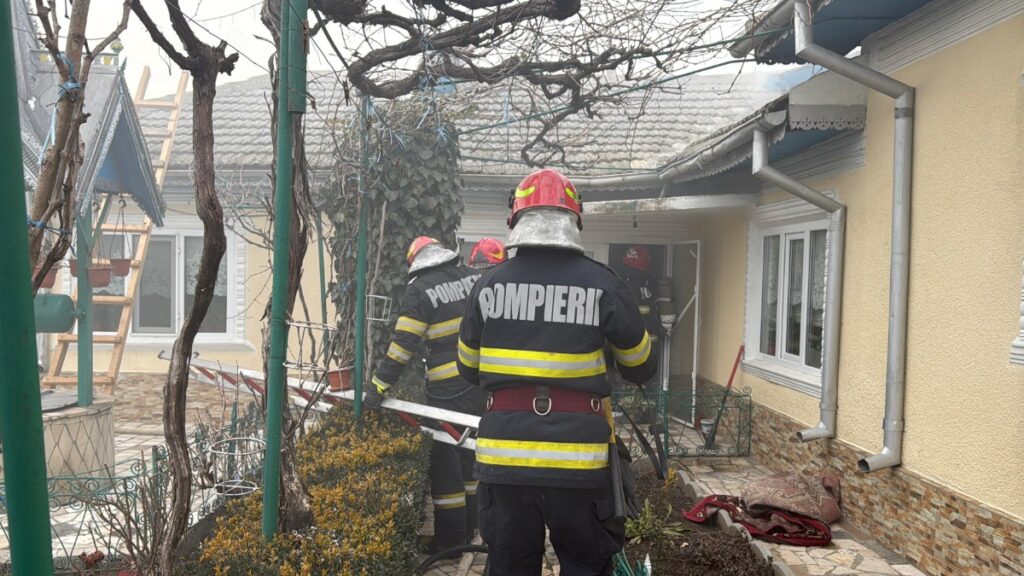 „Salvatorii ajunși la locul evenimentului au constatat ca incendiul se manifesta la acoperișul locuinței, în zona coșului de fum al sobei, cu degajări mari de fum.