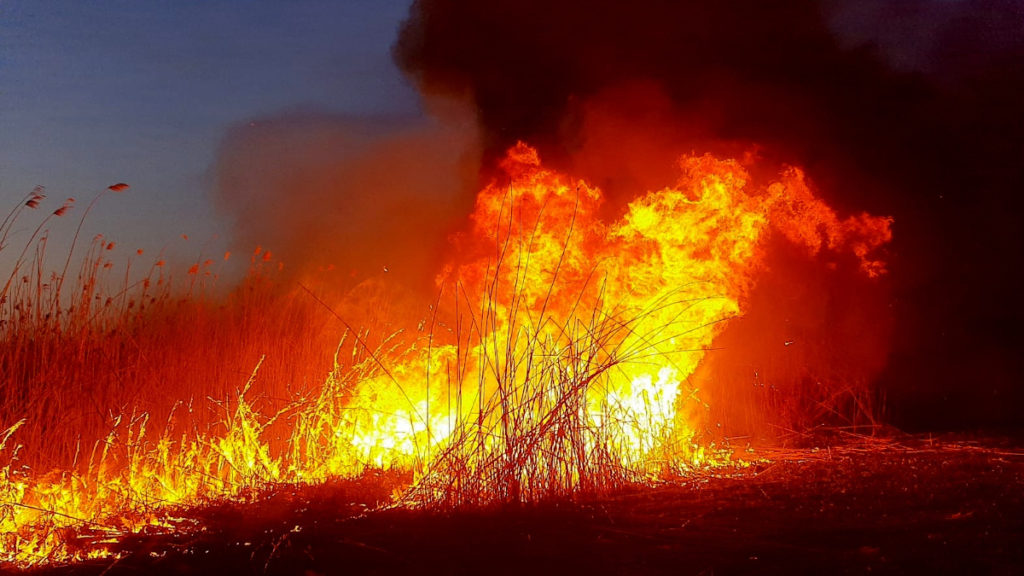 Pompierii au avut de-a face cu un puternic incendiu de vegetație. FOTO ISU Delta