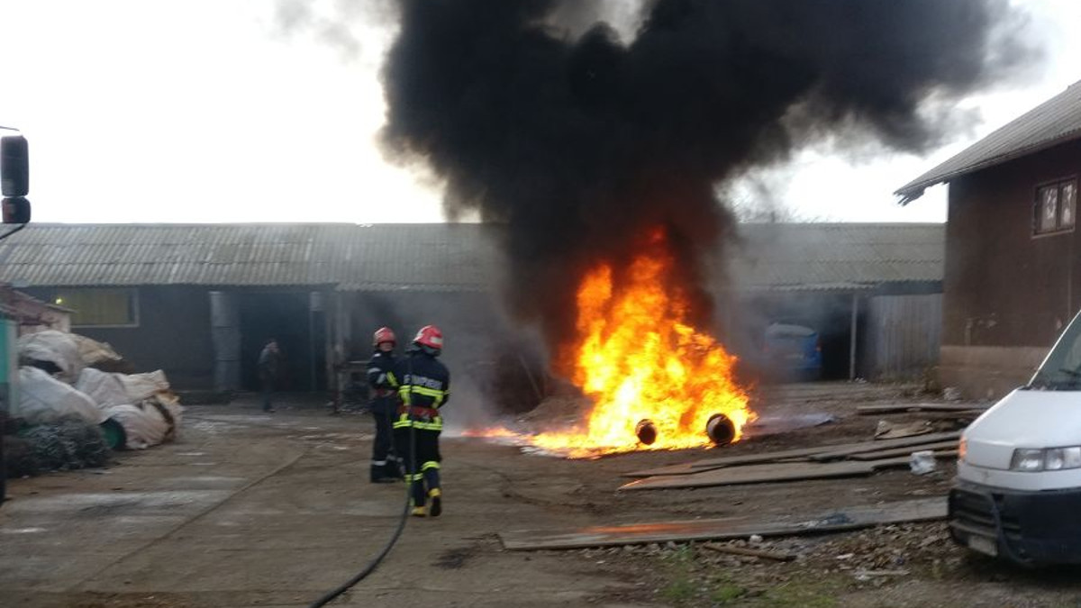 Incendiu tulcea pompieri Un incendiu puternic a izbucnit în curtea unui atelier. FOTO ISU Delta Tulcea