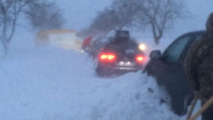 Zeci de mașini sunt blocate în zăpadă în apropiere de localitatea Cataloi. Aici se intervine de ore bune și nu se reușește să se curețe zăpada din cauza viscolului. Autoritățile au decis și transportarea unei tinere de 18 ani, însărcinată în 9 luni, mamă pentru a doua oară, la Spitalul Județean Tulcea, pentru ca aceasta să fie în siguranță în cazul în care naște.