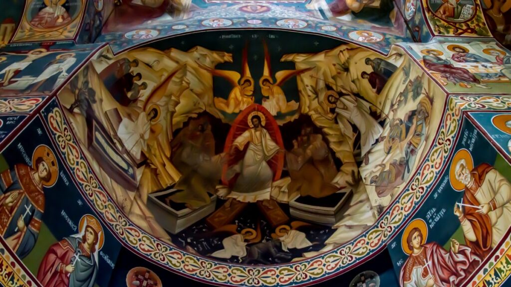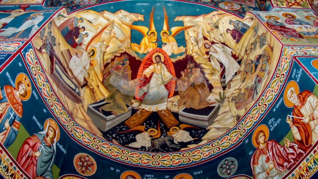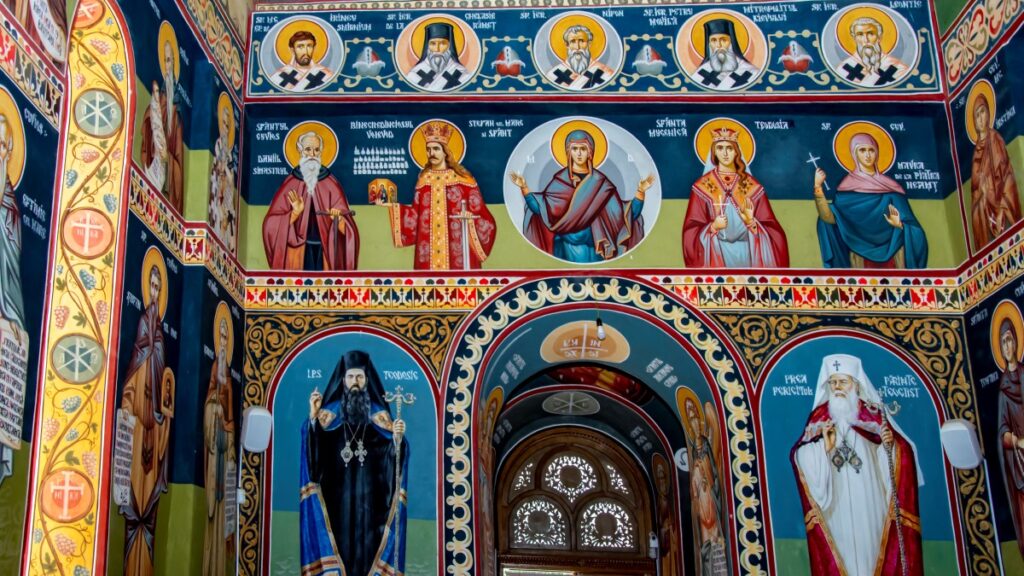 Așa aveau să rămână până în 1955, când episcolul Chesarie Păunescu dă binecuvântarea pentru ca lucrările de reconstrucție să înceapă. De această dată, lucrările se desfășoară în ritm susținut și sunt finalizate în toamna anului 1956. Pictura bisericii începe un an mai târziu, fiind începută de părintele Sofian Boghiu, care reușește să termine doar pictura de pe bolta sfântului altar, de pe bolta mare și din pronaos. Din păcate, în anul 1958, marele duhovnic și talentat pictor de biserici, ajuns mai târziu stareț la Mănăstirea Antim din București, este arestat împreună cu ceilalți membri ai organizației “Rugul Aprins” (numită și Grupul de la Mănăstirea Antim), nereușind să finalizeze împodobirea bisericii mari.