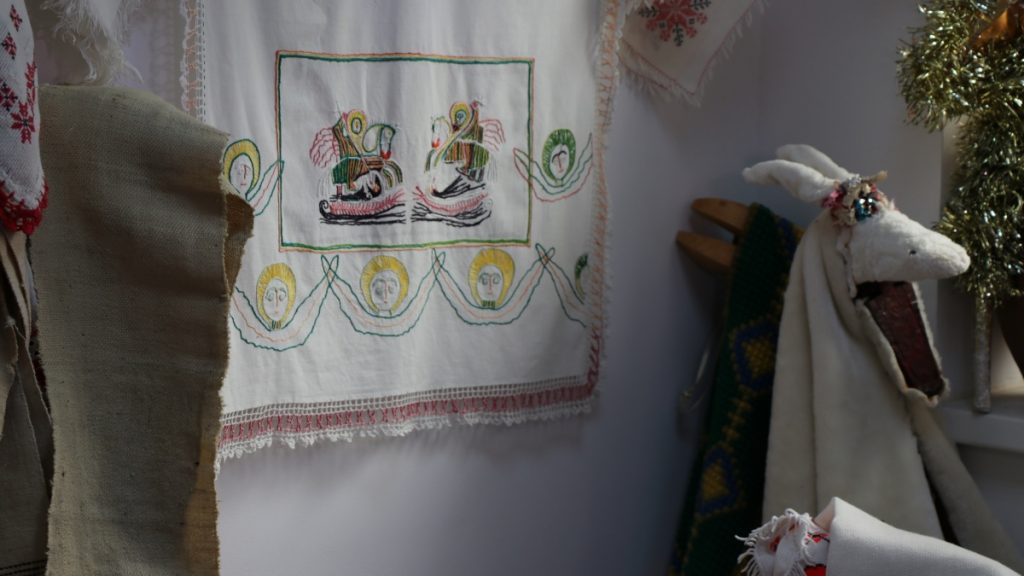 “Este un veșmânt pentru iconostas, cusut chiar de localnicele din 1932, dăruit pentru a împodobi biserica. Reprezintă o icoană în miniatură a Sfântului Gheorghe, iar ca valoare etnologică bănuiesc că este una, dar cea spirituală o copleșește, fiind primul veștmânt al iconostasului din biserica noastră. Am intrat în posesia lui cu intenția de a-l păstra și de a-l așeza undeva într-un loc deosebit. Când am venit cu soțul meu, care este preot în localitate, l-am găsit, iar atunci când l-am văzut, era stocat acolo cu cinste, între lucrurile celelalte ale bisericii. Mi-am dat seama că e un lucru prețios, că trebuie așezat în alt spațiu și așa am reușit să îl păstrăm”, a afirmat Eugenia Frigioiu.