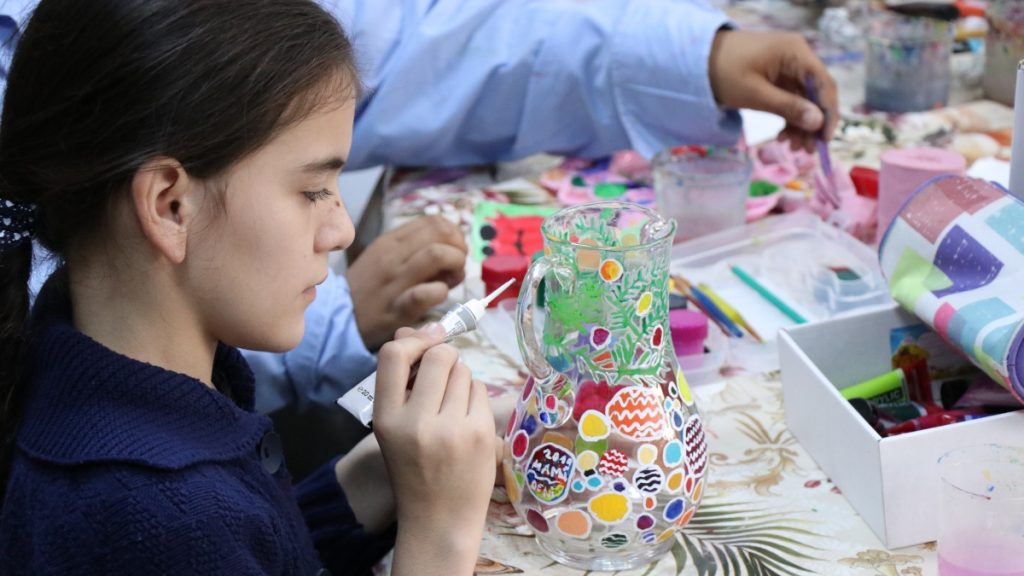 “Ei sunt cei care mă motivează pentru că ei vin întotdeauna cu bucurie. Aș vrea chiar să suplimentăm întâlnirile, dar ne limităm la cât ne permite timpul. Aici ne înfrumusețăm minutele pe care le petrecem cu ajutorul culorilor, cu colaje, cu tot felul de manifestări artistice, iar după ce desăvârșim lucrul și spunem că am ajuns la o stare de desăvârșire, le expunem și celorlalți. Organizăm periodic expoziții motivate fie de eveniment sau pur și simplu dorim să arătăm ce lucrăm. Sunt trei grupe, începând de la grupa pregătitoare chiar avem o identitate a lor – grupa minionilor, deci până la clasa a patra, clasa a cincea pentru că au fost numeroși, a rămas o grupă de sine stătătoare – a voinicilor, bineînțeles, seniorii”, a povestit profesoara de arte plastice Eugenia Frigioiu.