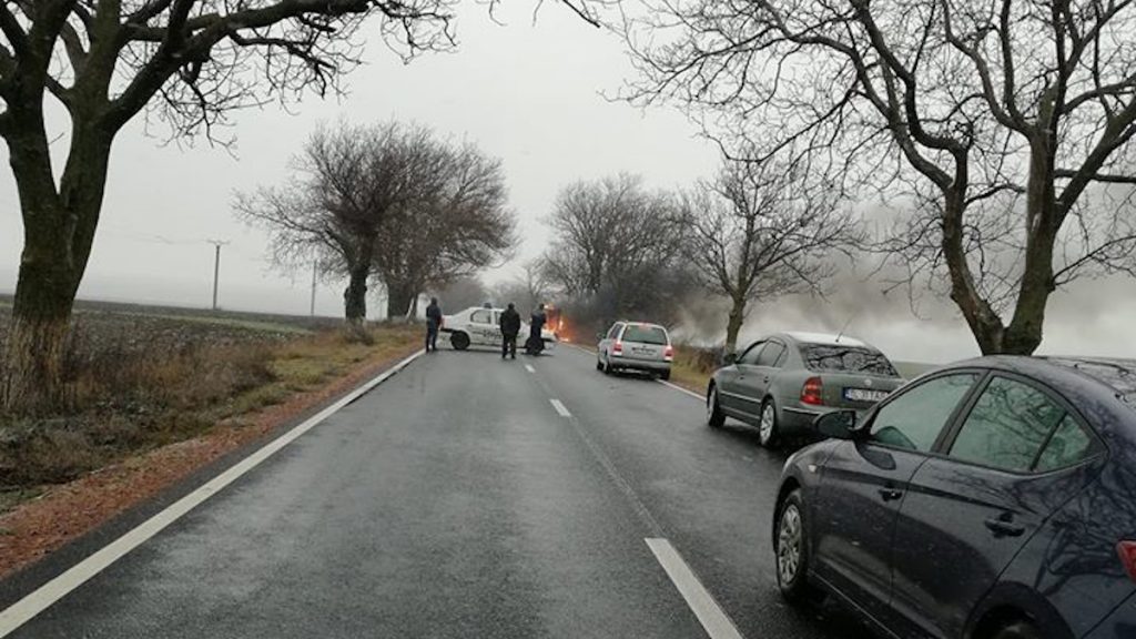 Poliția a oprit circulația în zona unde ardea mașina. FOTO Facebook