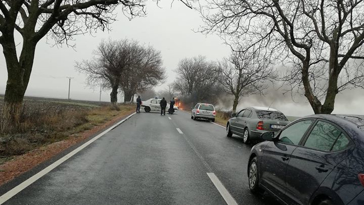 Un autovehicul a luat foc în trafic în jurul orei 14.00, pe DN 22 A la km 11, între localitățile Nalbant și Cataloi. Traficul a fost oprit pe ambele sensuri de circulație pentru a permite intervenția pompierilor.