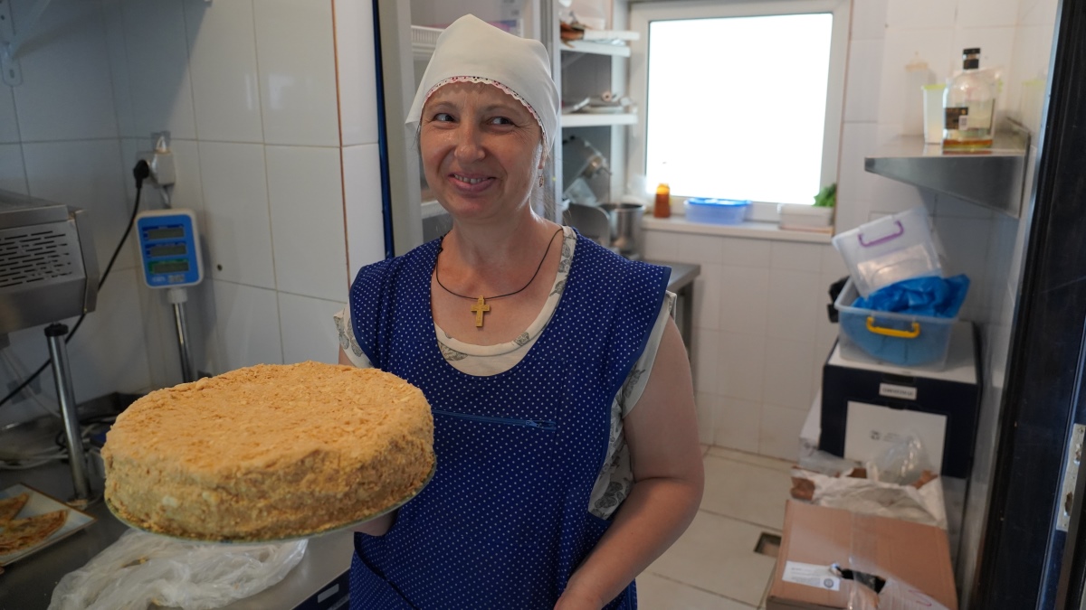 „Prietenele mele au fost aici, prin bucătarul Costi au ajuns ele și am venit și eu. Le-am întrebat dacă nu cumva se găsește ceva de lucru și au spus că este nevoie la bucătărie, iar eu am venit cu băiatul meu, Roman. Mâncarea se deosebește. Aici oamenii preferă mai mult peștele, la noi se preferă mai mult carnea; și peștele, dar mai mult carnea. Din ce am observat, aici se cere mai mult tortul Napoleon, îl avem și în bucătăria noastră, e bun, e gustos, mai facem tort din ciocolată, prăjitură cu brânză dulce, care iar este foarte gustoasă. Mai fac tort cu mere, prăjitură cu mere, plăcintă cu mere. Eu nu sunt cofetar/patiser de meserie, eu am învățat singură, ca pentru mine, iar celor de aici le-a plăcut”, mărturisește Angela Lischievici.
