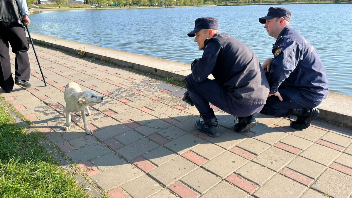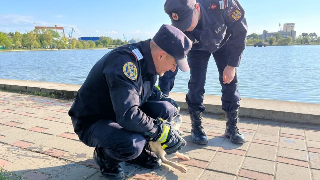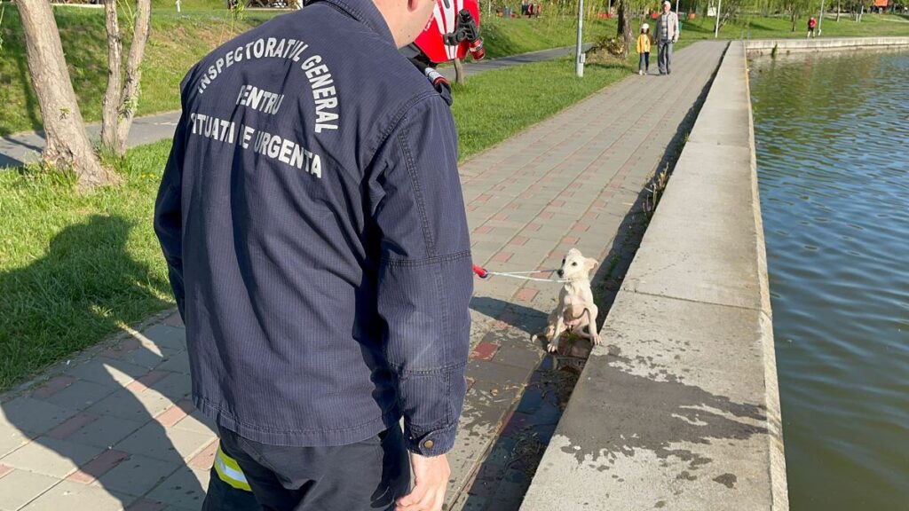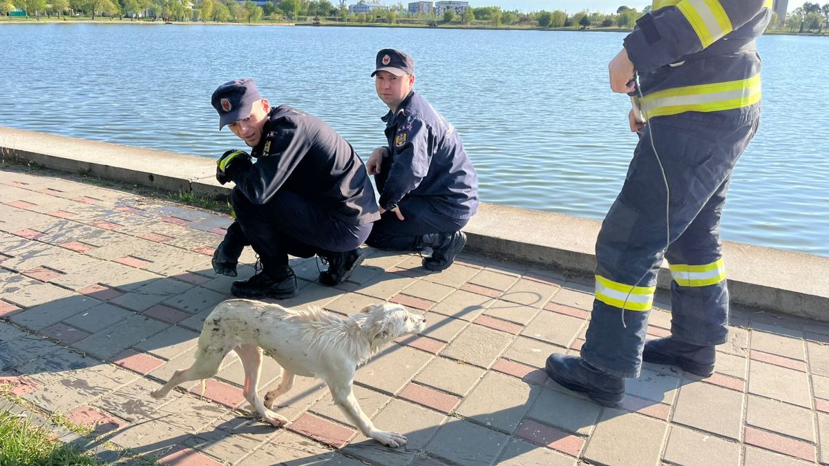 “În scurt timp a fost mobilizat un echipaj format din 3 subofițeri cu o autospecială de transport și o barcă pneumatică ce a ajuns la fața locului iar în mai puțin de 10 minute de la primirea apelului cățelușa a fost salvată. Aceasta se afla sub malul din beton al lacului, loc unde a găsit câteva pietre pe care stătea însă, fiind foarte obosită și speriată nu a mai putut înota către zona de plajă pentru a ieși.